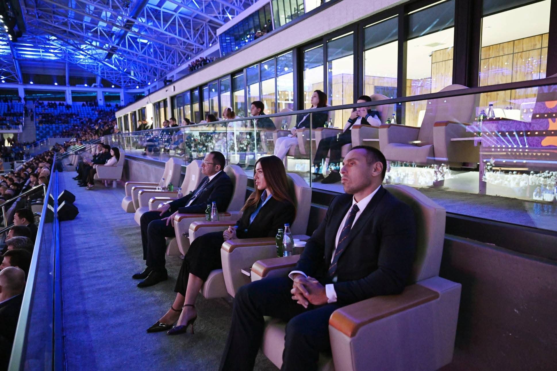 Sportnet.az-ın məlumatına görə, təntənəli mərasimdə Azərbaycan Prezidenti İlham Əliyev və Birinci vitse-prezident Mehriban Əliyeva iştirak edib.