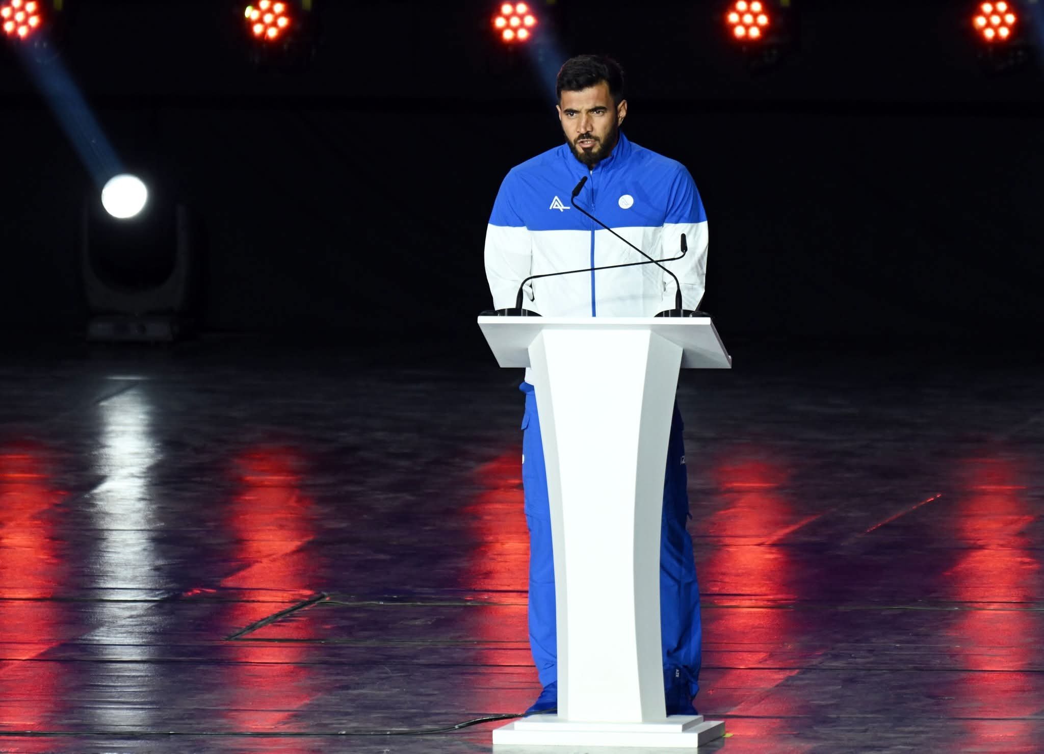 Çövkən üzrə milli komandanın kapitanı, dünya və Avropa çempionu Elçin Camallı idmançılar, Əsgərxan Novruzov məşqçilər, Ləman Cəbrayılova hakimlər adından adından and içib.