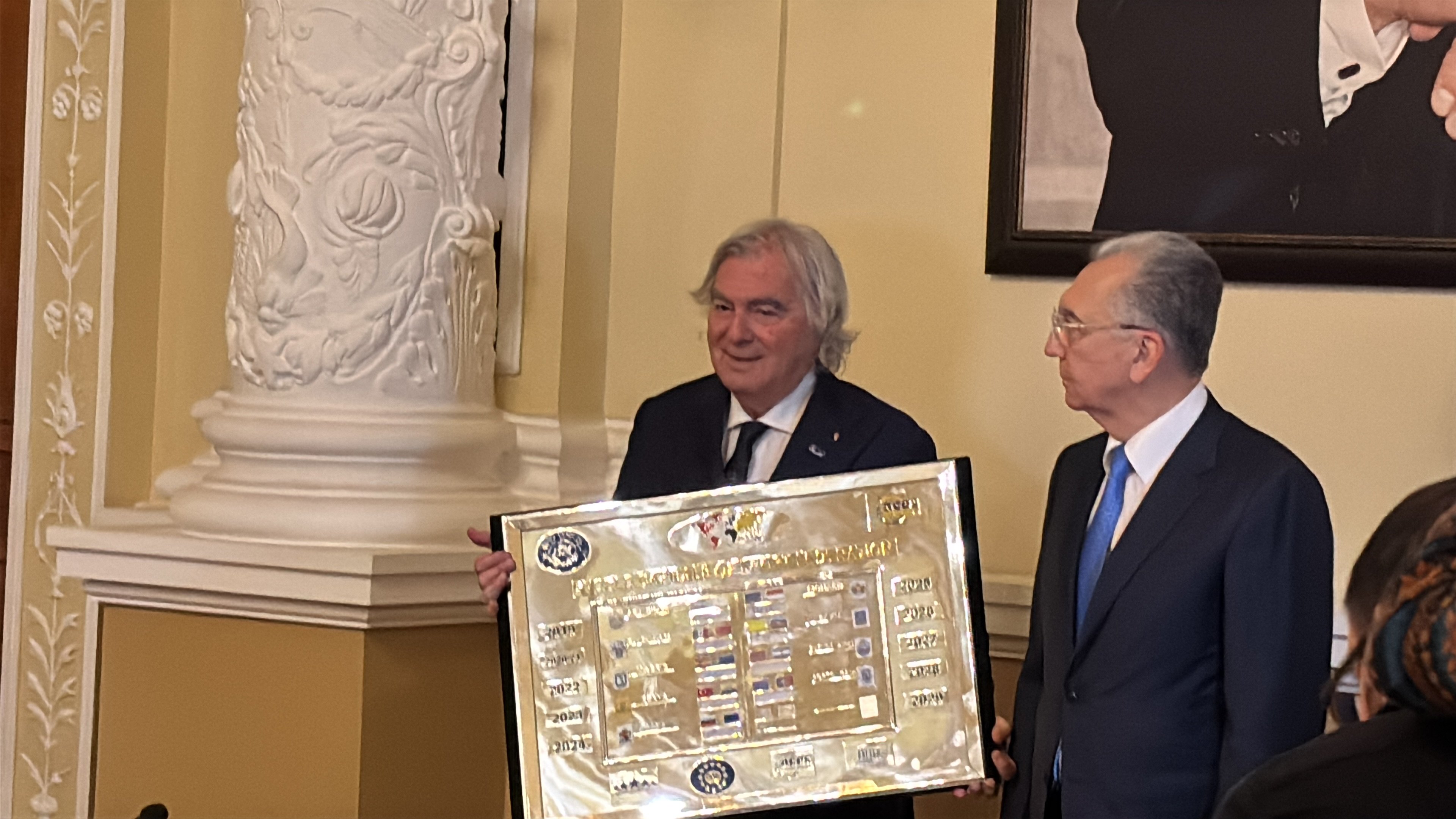 İtaliyalı qonaq Azərbaycanla əlaqələri genişləndirməyi özləri üçün böyük önəm kəsb etfiyini bildirib. Daha sonra o, builki paytaxt Monakodan gətirdikləri Dünya İdman Paytaxtı lövhəni Azərbaycana təqdim edib.