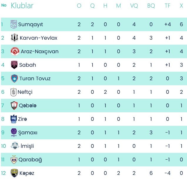 Beləliklə, ilk 2 oyunda xal itirməyən yeganə komanda "Sumqayıt"dır. "Qarabağ"la ilk tur matçı təxirə salınmış "Sabah" da yeganə oyunundan maksimum xal əldə edib.