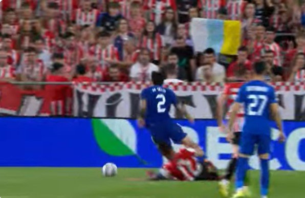 Sportnet.az-ın məlumatına görə, 73-cü dəqiqədə Azərbaycan təmsilçisinin futbolçusu Mateus Silva rəqibin cərimə meydançası daxilində kobud oyunla üzləşib.