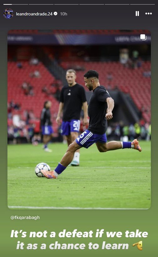 "Qarabağ"ın futbolçusu Leandro Andrade UEFA Çempionlar Liqasının Liqa mərhələsinin III turunda "Atletik"ə səfərdə 1:3 hesabı ilə uduzduqları oyunla bağlı fikirlərini bölüşüb.