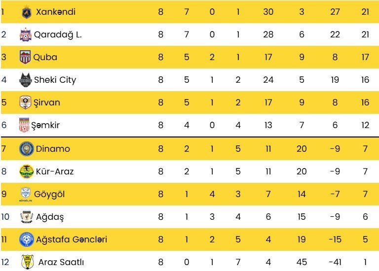"Xankəndi" səfərdə "Ağdaş"ı 4:0, ən çox qolun vurulduğu oyunda isə "Qaradağ Lökbatan" "Göygöl"ü 7:2 hesabı ilə yenib. Nəticədə Xankəndi və Lökbatan təmsilçiləri hərəyə 21 xalla ilk 2 pilləni bölüşür.