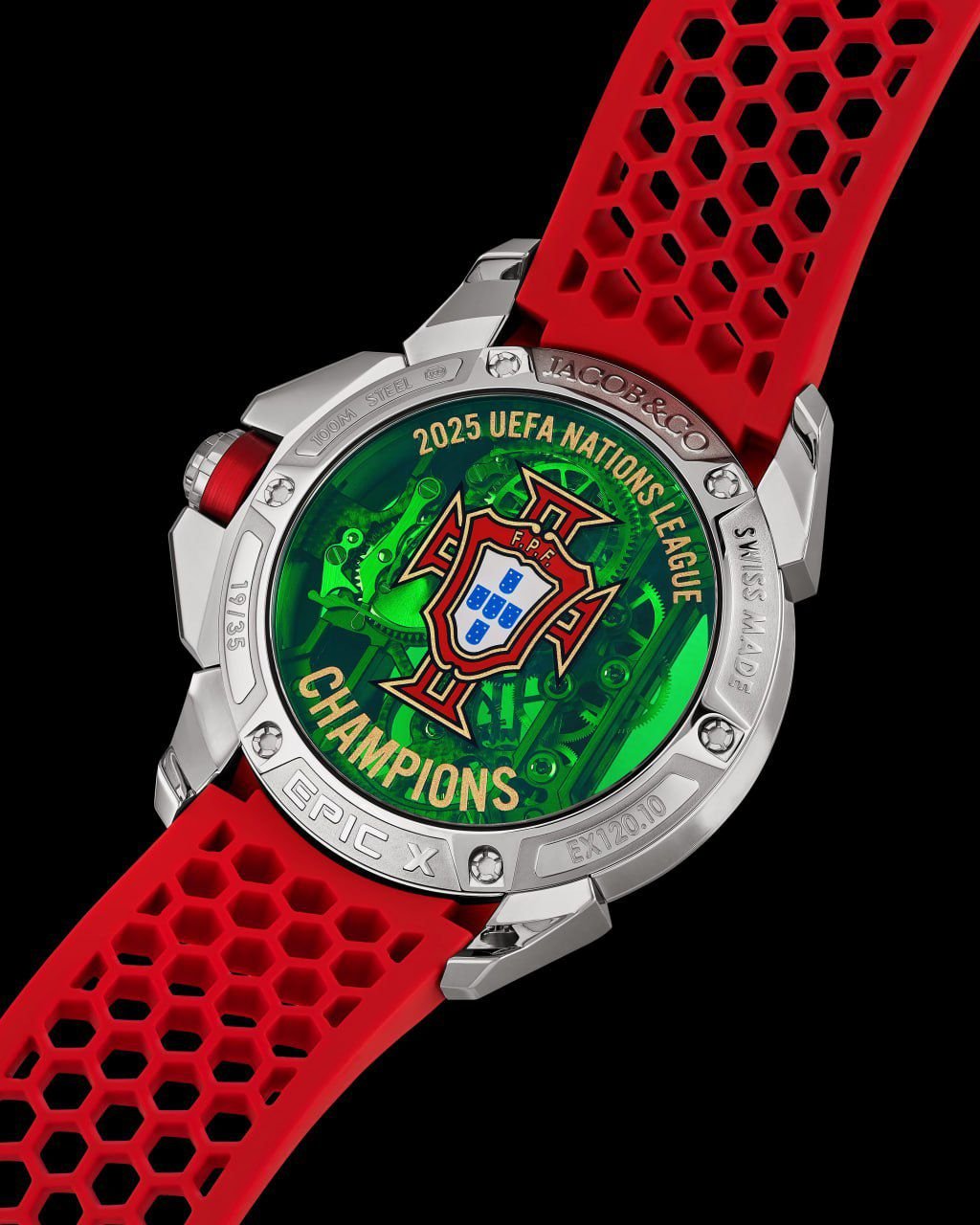 Saatların görüntülərini istehsalçı şirkət sosial şəbəkələrdə paylaşıb. Model skelet tipli çərçivəyə malikdir və üzərində Portuqaliya Futbol Federasiyasının gerbi ilə Millətlər Liqasının kuboku təsvir olunub. Arxa hissədə isə “Millətlər Liqasının çempionları — 2025” yazısı yer alır.