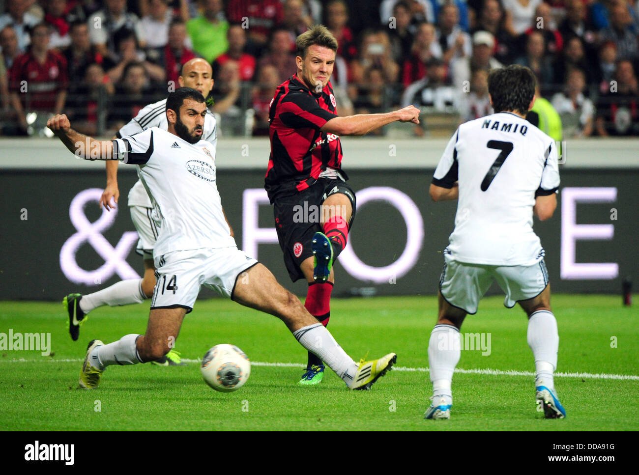 Həmin vaxt Mayer Frankfurt təmsilçisinin kapitanı olub. Hücumçu 2023-cü il avqustun 22-də "Ayntraxt"ın Tofiq Bəhramov adına Respublika stadionunda "Qarabağ"a 2:0 hesabı ilə qalib gəldiyi ilk matçda 6-cı və 75-ci dəqiqələrdə fərqlənərək, "dubl" edib. Avqustun 29-da Frankfurtda baş tutmuş cavab görüşündə isə Azərbaycan klubu 1:2 hesabı ilə uduzub. Bu dəfə rəqibin ilk qoluna 10-cu dəqiqədə Mayer imza atıb. Beləliklə, o, "Ayntraxt"ın "Qarabağ"ın qapısından keçirdiyi 4 topdan 3-nün müəllifi olub.