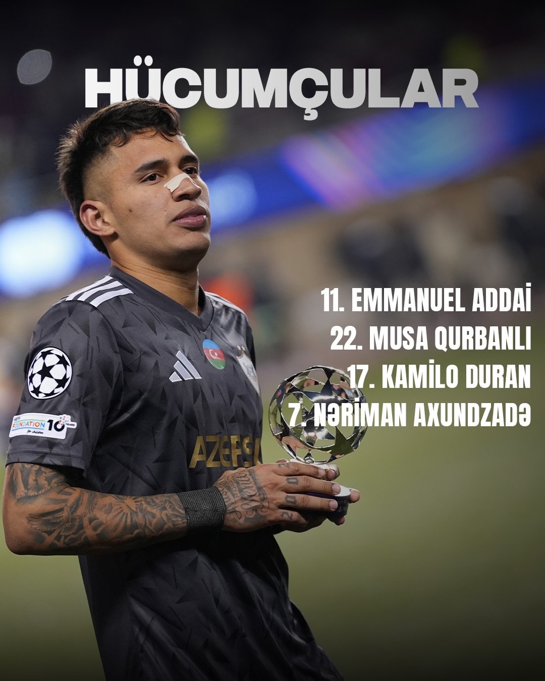 Hücumçular: 11.Ammanuel Addai, 22.Musa Qurbanlı, 17.Kamilo Duran, 7.Nəriman Axundzadə.