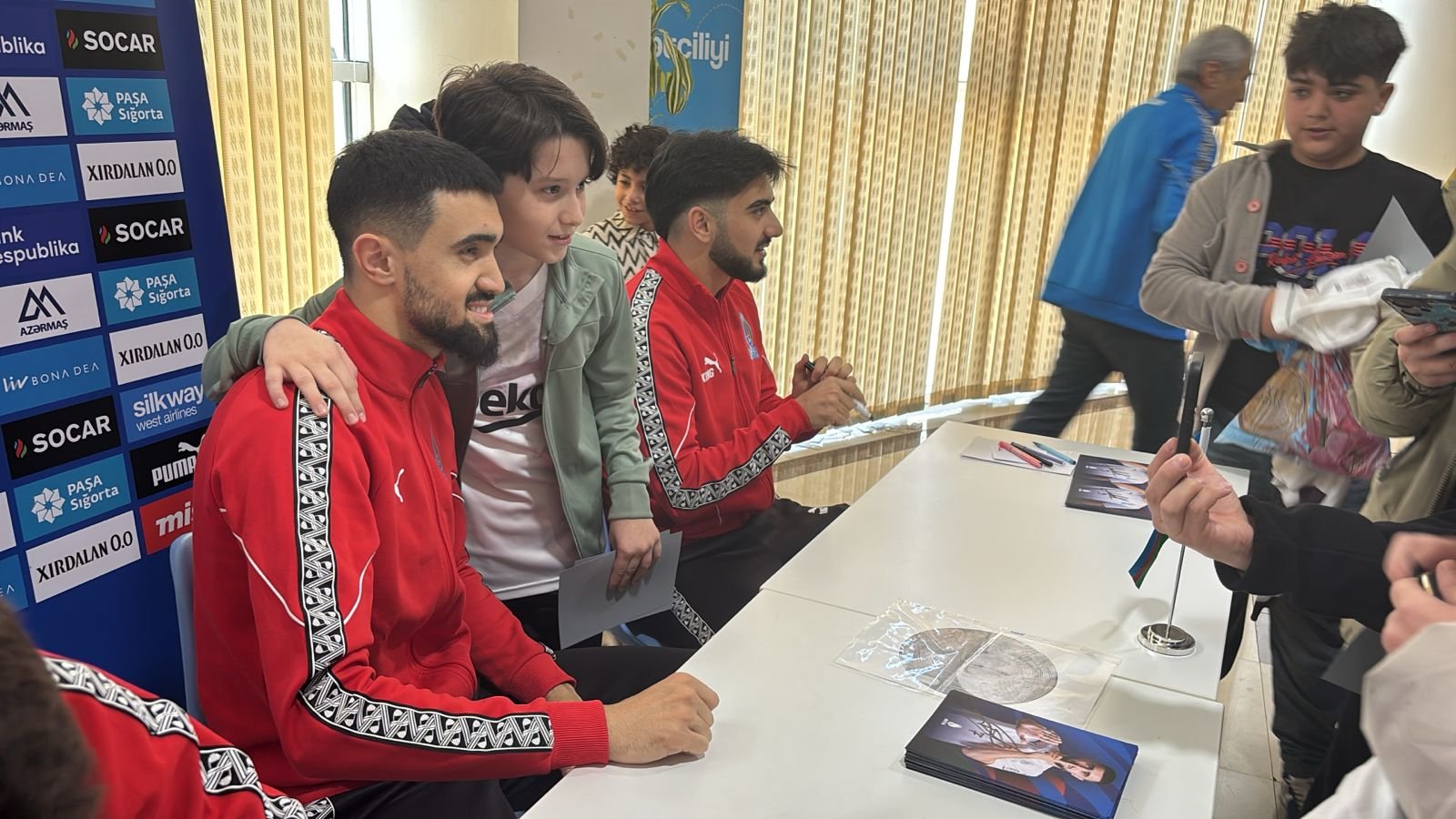 Azərbaycan milli komandasının futbolçuları Toral Bayramov, Xəyal Əliyev və Rüstəm Əhmədzadə azarkeşlərlə görüşüb.
