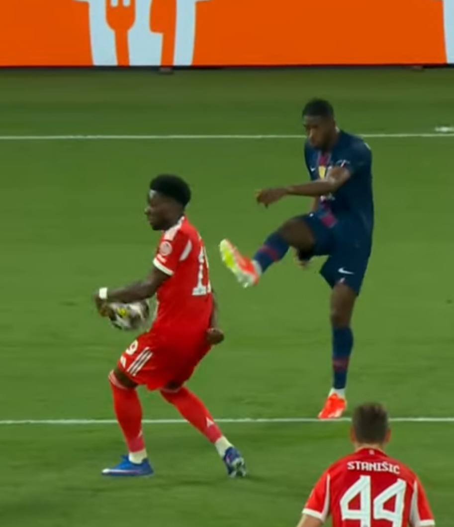Şörer 45+1-ci dəqiqədə meydan sahiblərinin futbolçusu Usman Dembelenin zərbəsindən sonra top cərimə meydançası daxilində qonaq komandadan Alfonso Deyvisin əlinə dəyib. Referi VAR hakimlərinin tövsiyəsindən sonra epizodu monitorda izləyib və penalti təyin edib. Usman Dembele bu imkandan yararlanmağı bacarıb. Görüş isə PSJ-nin qələbəsi ilə yekunlaşıb - 5:4.