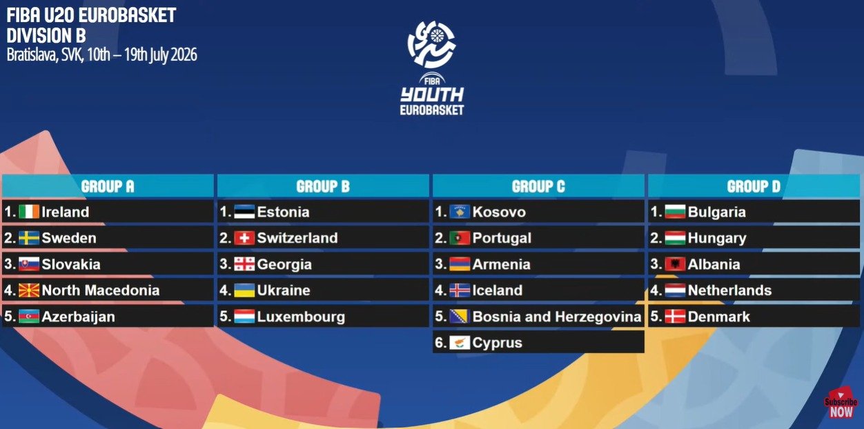 U-20 oğlanlardan ibarət komanda isə B divizionunda mübarizə aparacaq. 10–19 iyulda Slovakiyada gerçəkləşəcək A qrupunun oyunlarında rəqiblər İrlandiya, İsveç, Slovakiya və Şimali Makedoniya yığmaları olacaq.